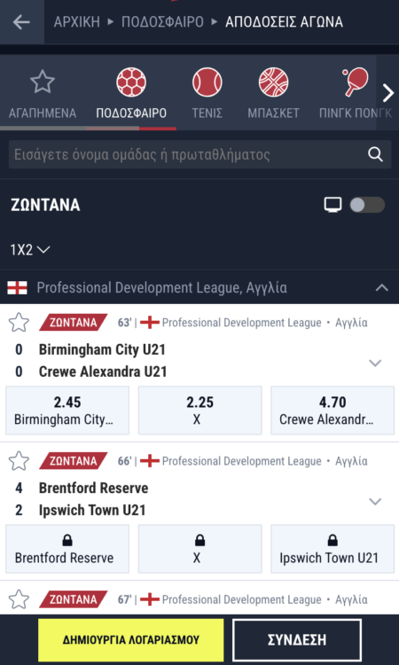 Ο ιστοτοπος εχει μια ενοτητα με αθλητικα στοιχηματα σε ζωντανη λειτουργια. Η ποικιλια των αθληματων εκει ειναι πολυ λιγοτερη, αλλα οι πιθανοτητες ειναι μεγαλυτερες. Στα κανονικα στοιχηματα, το μεσο περιθωριο κερδους των στοιχηματων ειναι 6-8%, στα ζωντανα στοιχηματα αυξανεται στο 8-10%. Τα στοιχηματα που γινονται δεκτα ειναι singles, express και συστηματα.