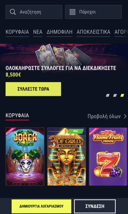 - μεγαλη ποικιλια τυχερων παιχνιδιων